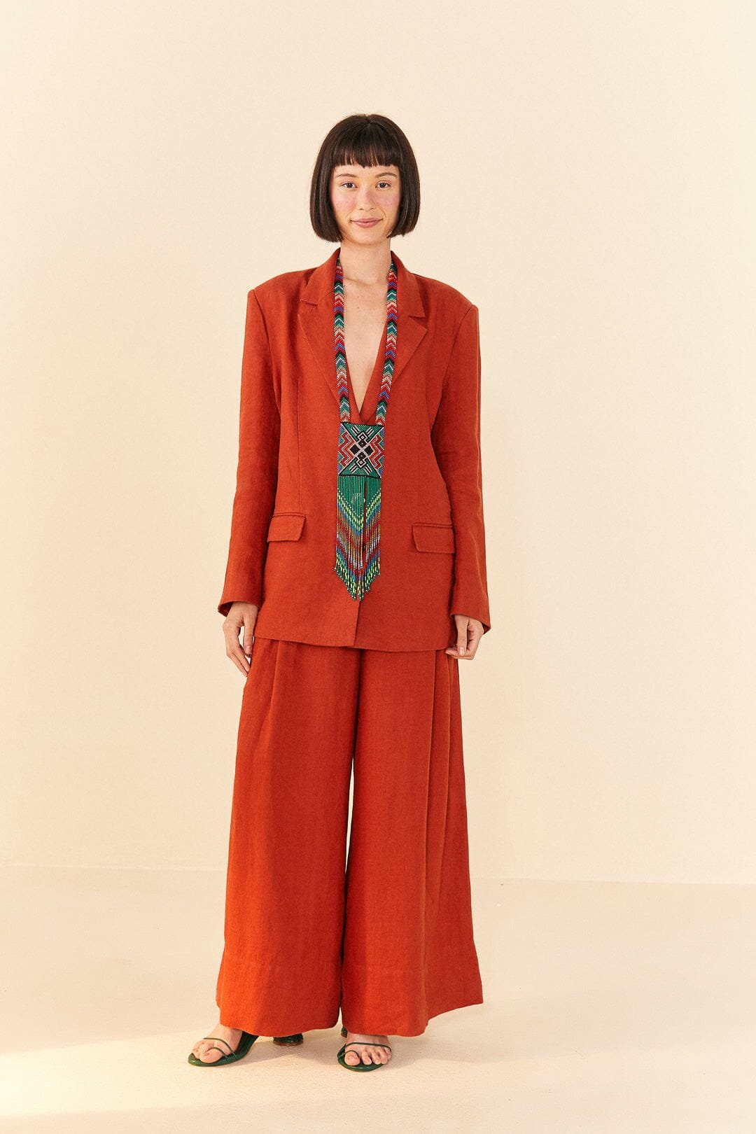 We can definitely call it the boldest classic: the Brown Blazer is here to be a timeless pick in your wardrobe. whatever the weather. no matter the occasion. It has a cozy fit. long sleeves to deal with the breeze. and versatile buttons to style it open or closed. From printed and solid bottoms to fresh shoes. your new fave top matches them all (but the Brown Wide Leg Pants are the coolest match!) <3